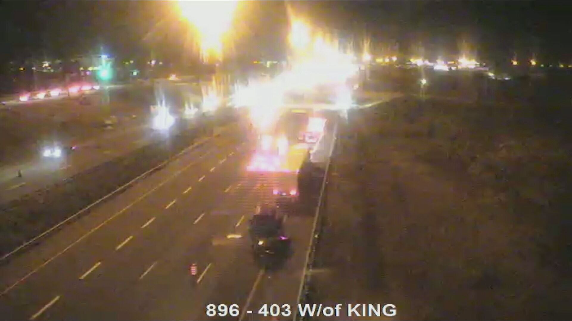 A worker has been transported to hospital with life-threatening injuries following a collision involving a Ministry of Transportation vehicle on Hwy. 403 in Burlington.