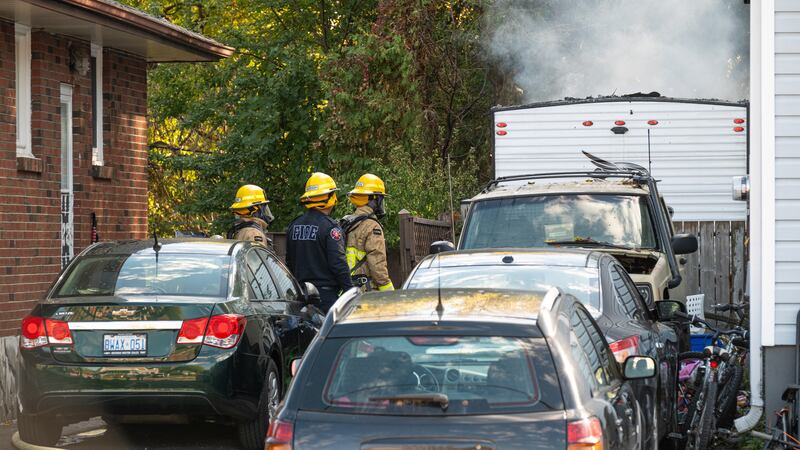 “They arrived on scene within three minutes of the call and found a trailer fully engulfed in flames,” Acting Staff Sgt. Joanne McCabe told reporters at the scene.