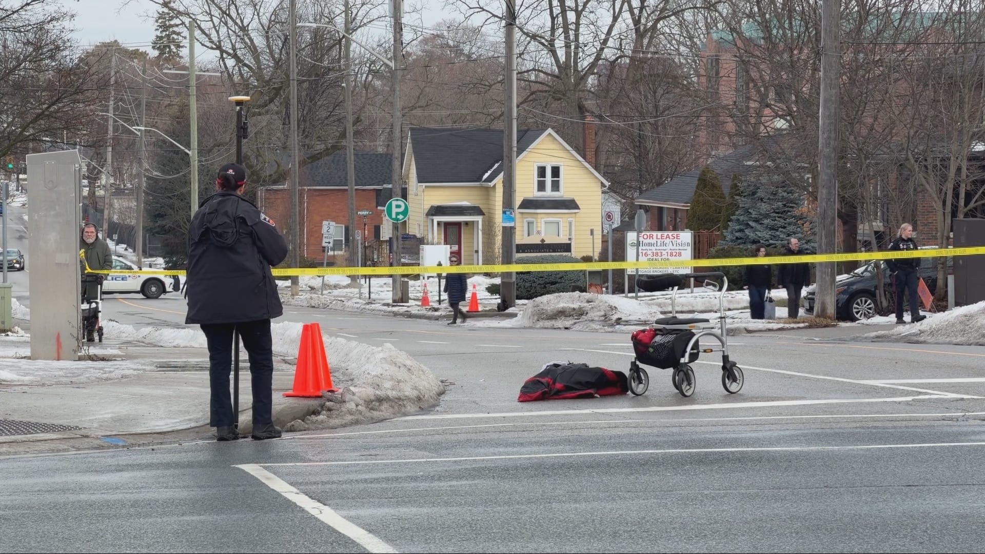 An elderly woman is in life-threatening condition after being struck by a vehicle in Whitby on Friday afternoon.