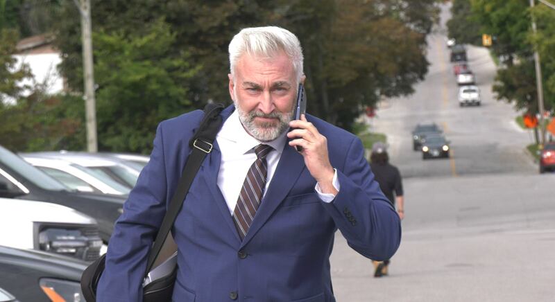 The sentencing hearing for a Niagara-area man convicted of selling mimicked works of late Indigenous artist Norval Morrisseau got underway in a virtual Barrie courtroom, where Jeff Cowan was represented by lawyers Nathan Gorham and Breana Vandebeek.