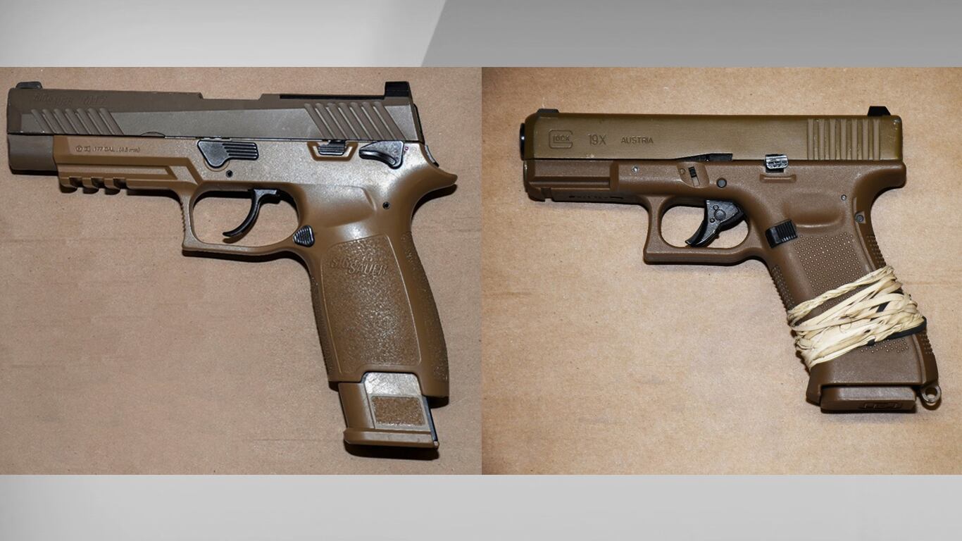 Officers also recovered the stolen vehicle they used to get away and two replica firearms, police said.