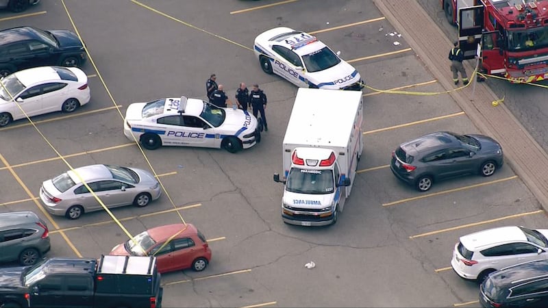 Police said a call came in shortly before 2 p.m. for a shooting in the parking lot of a strip mall near Queen Street East and Airport Road.