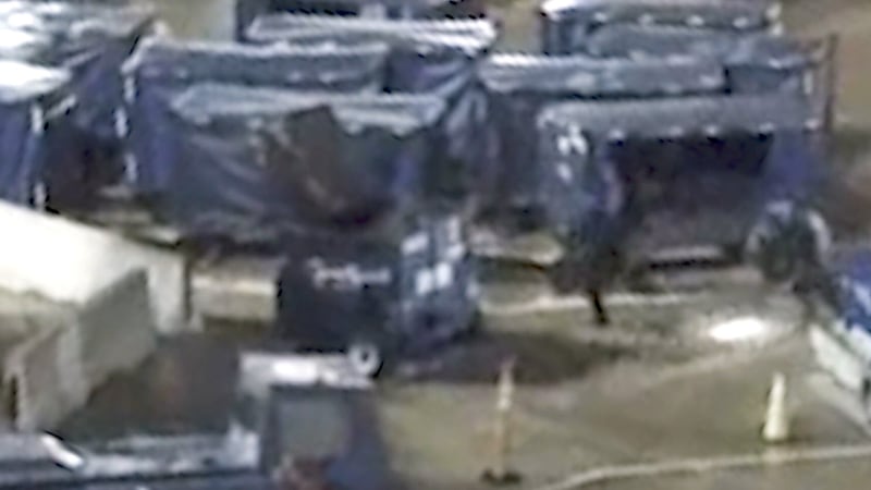 The baggage handler is then seeing ducking into what looks like a luggage cart. He hides there for a while, but Canada Border Services Agency (CBSA) officers carrying flashlights pull back the curtains to find him.