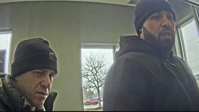 The other suspect is believed to be five-foot-five, clean-shaven and wearing a black or grey jacket, black toque, grey pants, grey sweater, and a black satchel.