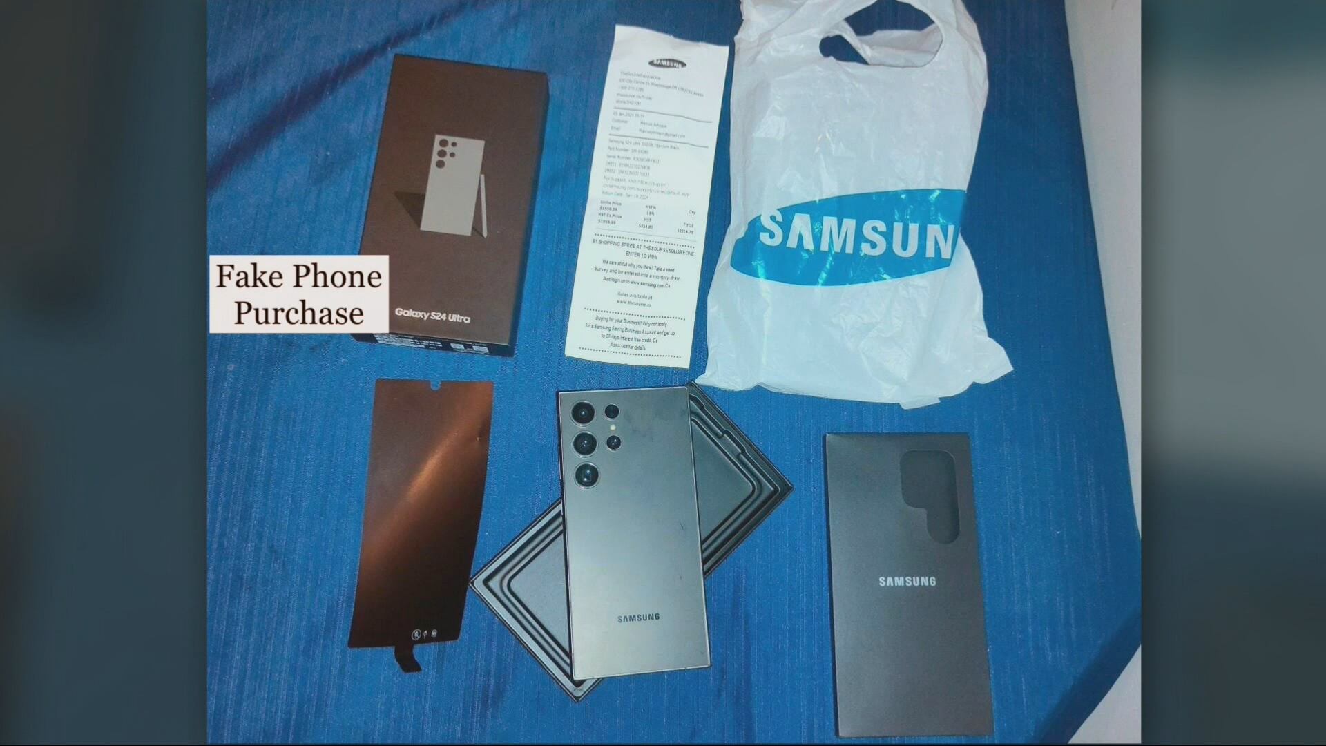 “This is what I thought I was buying,” Gerroir said, pointing to the S24 pictured in the box. “It looks quite real even when you open it - it looks identical to the real thing.”