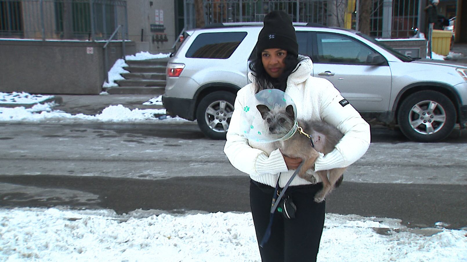 Monday night, Ann Selvanayagam’s five-year-old Terrier-Cross was attacked in June Callwood Park near Fleet and Bastion streets. She said she was using her hands-free leash when she looked away for about five seconds.