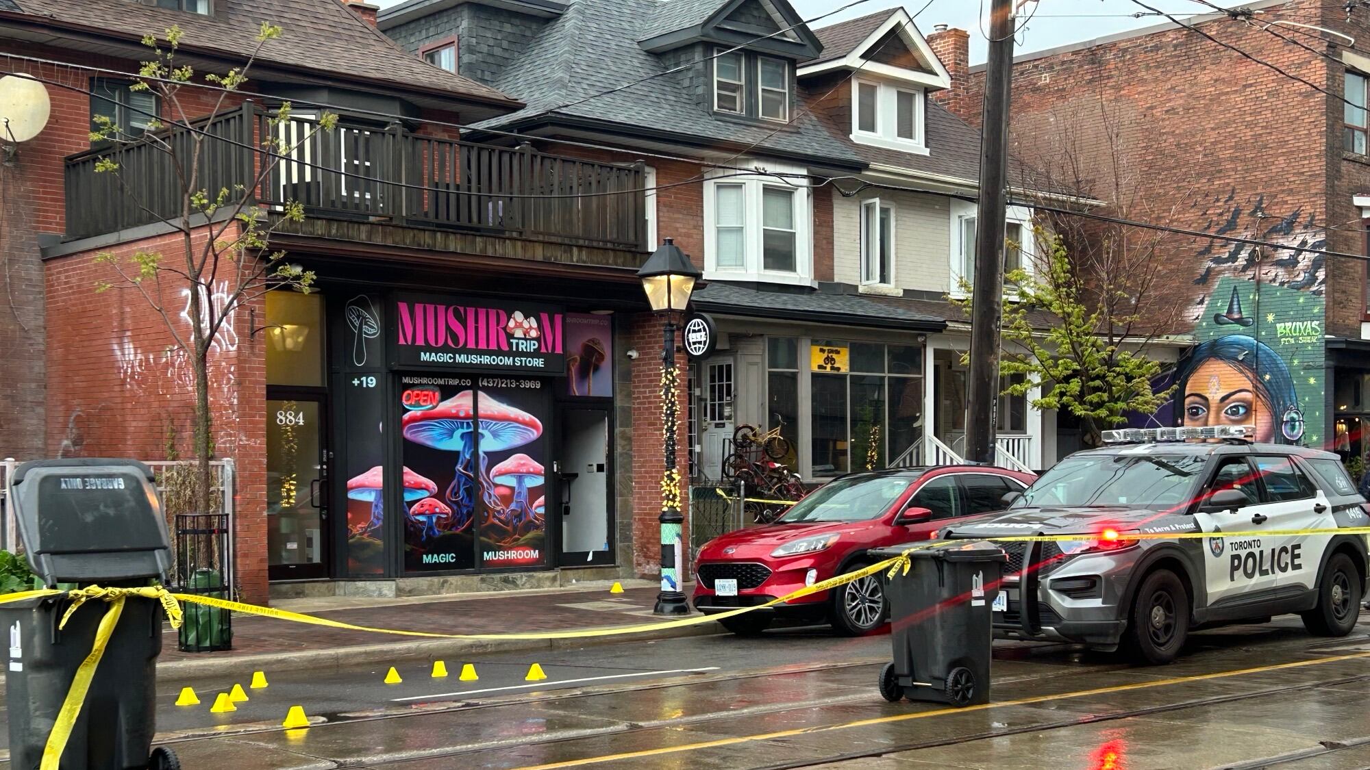 Toronto police said they were called to a dispensary at College Street and Dovercourt Road around 4:30 a.m. Friday after shots were heard in the area.