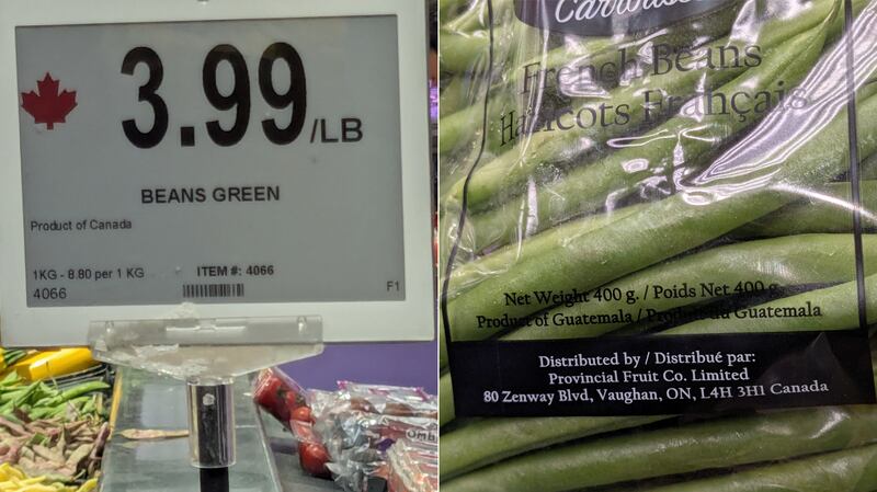 Photos provided to CTV News show green beans for sale with signage that shows “Product of Canada,” but when you take a closer look, the packaging indicates “Product of Guatemala.”