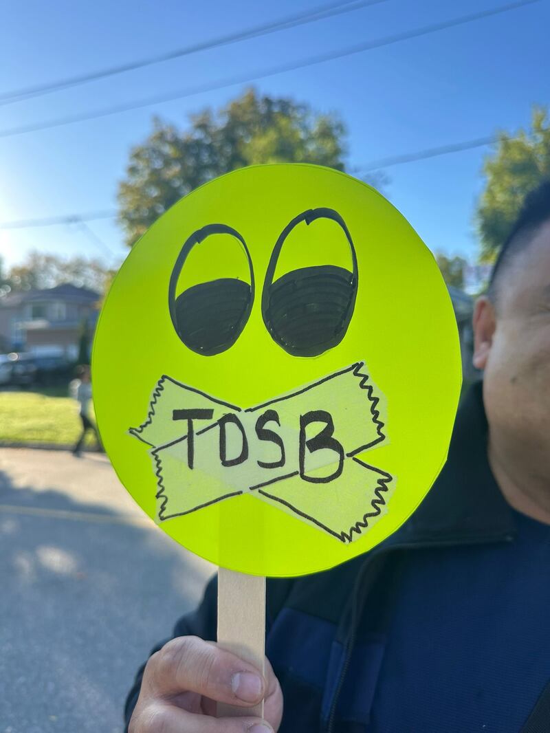 In photos shared with CTV News Toronto, parents and students alike can be seen holding various signs, with slogans like, “Smaller classes, stronger kids!” and “Stop ignoring our kids’ education” among the posters. Some even held up emoji-like posters with the icon’s mouth crossed out and the TDSB emblazoned above.