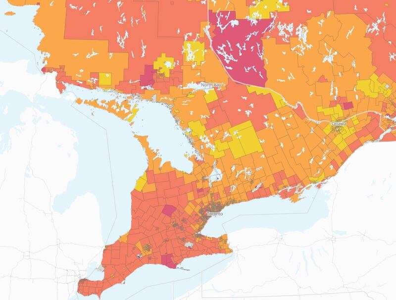 Vinodrai said the research is somewhat surprising in terms of “how widespread” the potential impacts of tariffs would be. An interactive map predicts, in a granular way, where tariffs would be felt most closely. Zooming in, it shows that few parts of Ontario would remain untouched, especially Southern Ontario.