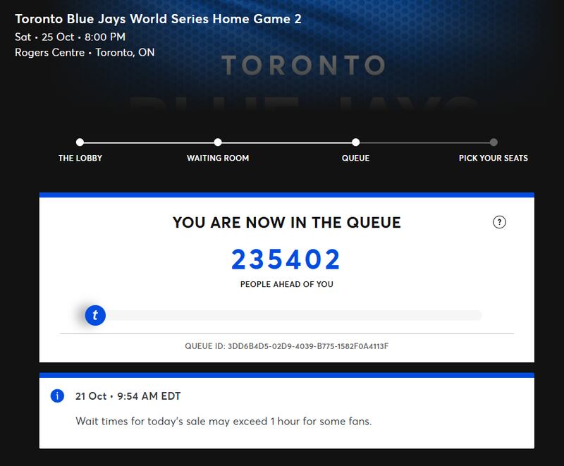 The sale started at 10 a.m. and by 10:30 a.m., those waiting in the digital queue to purchase a ticket to any of the four games at Rogers Centre were met with the message: “Primary Tickets for this event have sold out.”