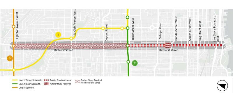 The Bathurst corridor was initially meant to run from Lake Shore all the way up to Eglinton Avenue West.