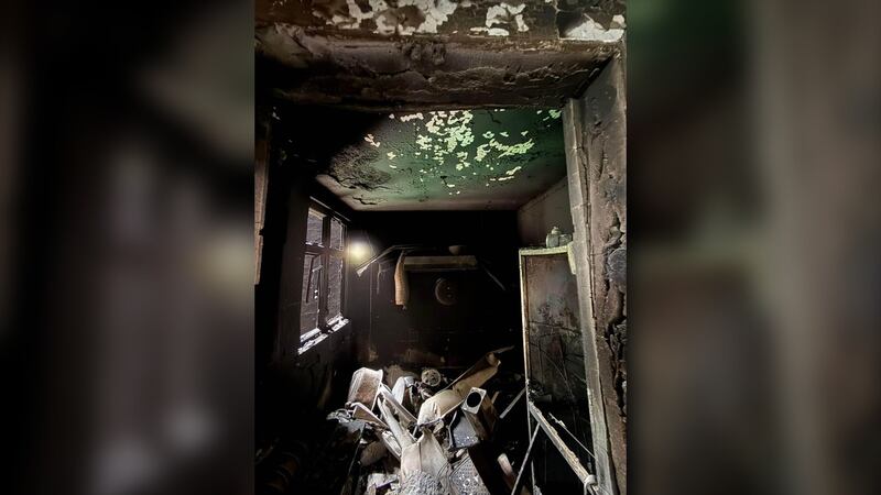 In this photo released by Hong Kong Police Public Relations Branch on Monday, Dec 1, 2025, the burnt out interior of an apartment in seen in the aftermath of a deadly Wednesday's fire at Wang Fuk Court, a residential estate in the Tai Po district of Hong Kong's New Territories. (Hong Kong Police Public Relations Branch via AP)