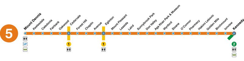 Line 5 runs between Mount Dennis and Kennedy Station, with 25 stops, more than half of them underground. The remaining surface stops will require trains to navigate traffic signals, an issue that has plagued the Finch West LRT, where riders have complained that buses are sometimes faster.