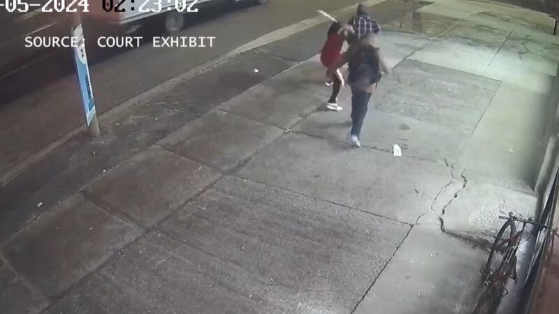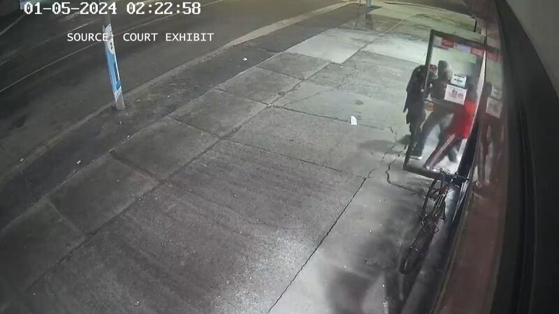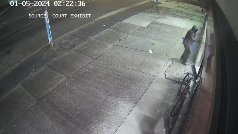 Security videos presented in court, obtained by CTV News Toronto, show a man entering the store with a baseball bat wrapped in a blue plastic bag.
