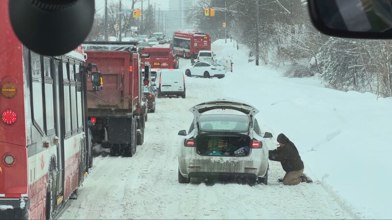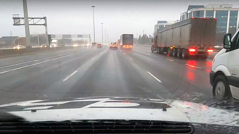 “You can see traffic behind me on the Gardiner is moving but it is moving slowly. We’ve got crashes kind of all across the region. A bunch of vehicles up on walls and into shoulders and ditches.”