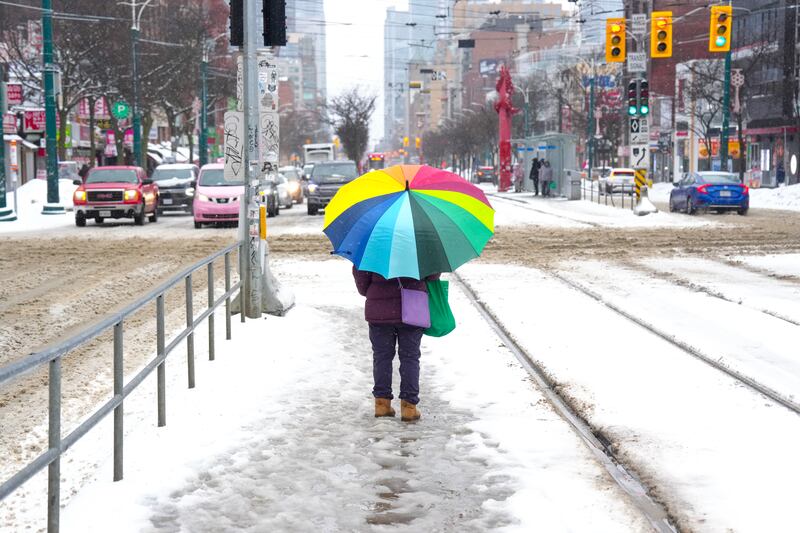 A winter storm brought a mix of snow, ice pellets, and freezing rain to the Greater Toronto Area on Wednesday, resulting in dozens of collisions on the roads, transit delays, flight and school bus cancellations.