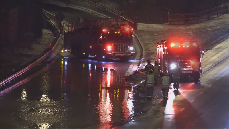 Water could be seen in multiple locations along the highway on Monday morning and cold temperatures exacerbated the issue, officials said.