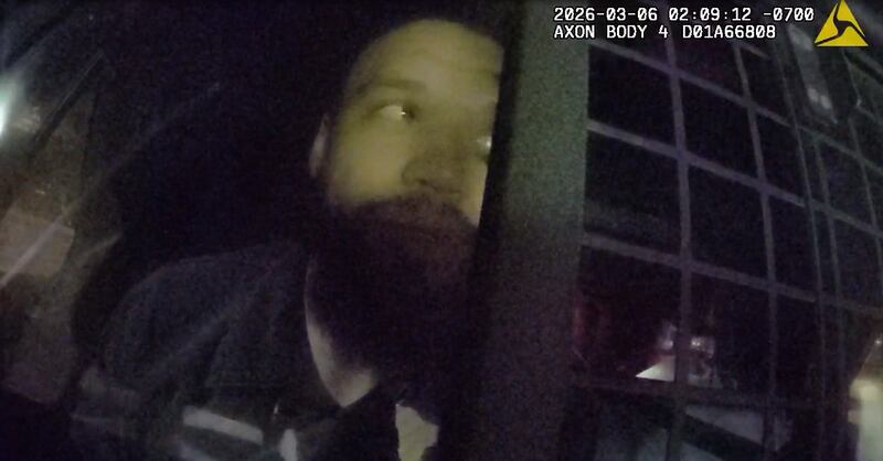 “Okay. Put your hands behind your back. You’re going to be placed under arrest tonight for the suspicion of driving under the influence,” the officer says.