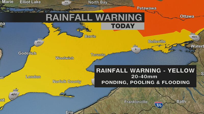 Toronto and many parts of Ontario were hit by heavy rainfall on Wednesday, causing some localized flooding on the roads.