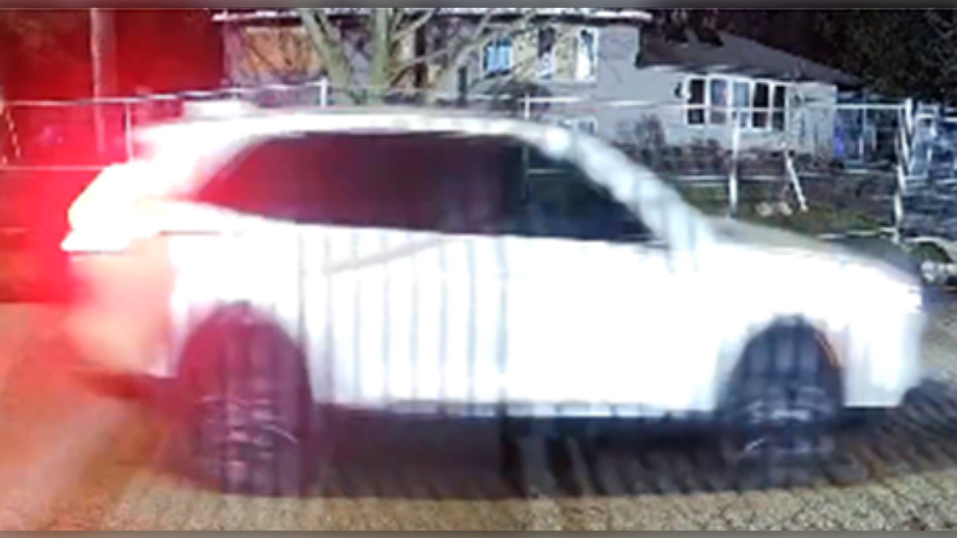 A suspect vehicle has been identified as a white Honda CRV. Police described the suspect as a male wearing a blue hoodie with a white emblem, black pants, and black shoes with white soles.
