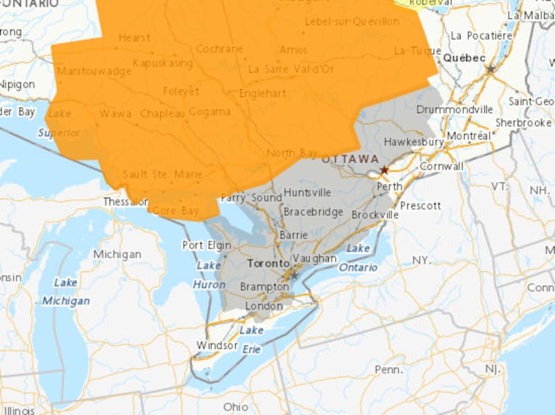 Issued shortly before 5 p.m., the statement applies to Burlington - Oakville, Caledon, the City of Hamilton, the City of Toronto, Halton Hills – Milton, Mississauga – Brampton, Newmarket - Georgina - Northern York Region, Pickering - Oshawa - Southern Durham Region, Uxbridge - Beaverton - Northern Durham Region, and Vaughan - Richmond Hill – Markham.
