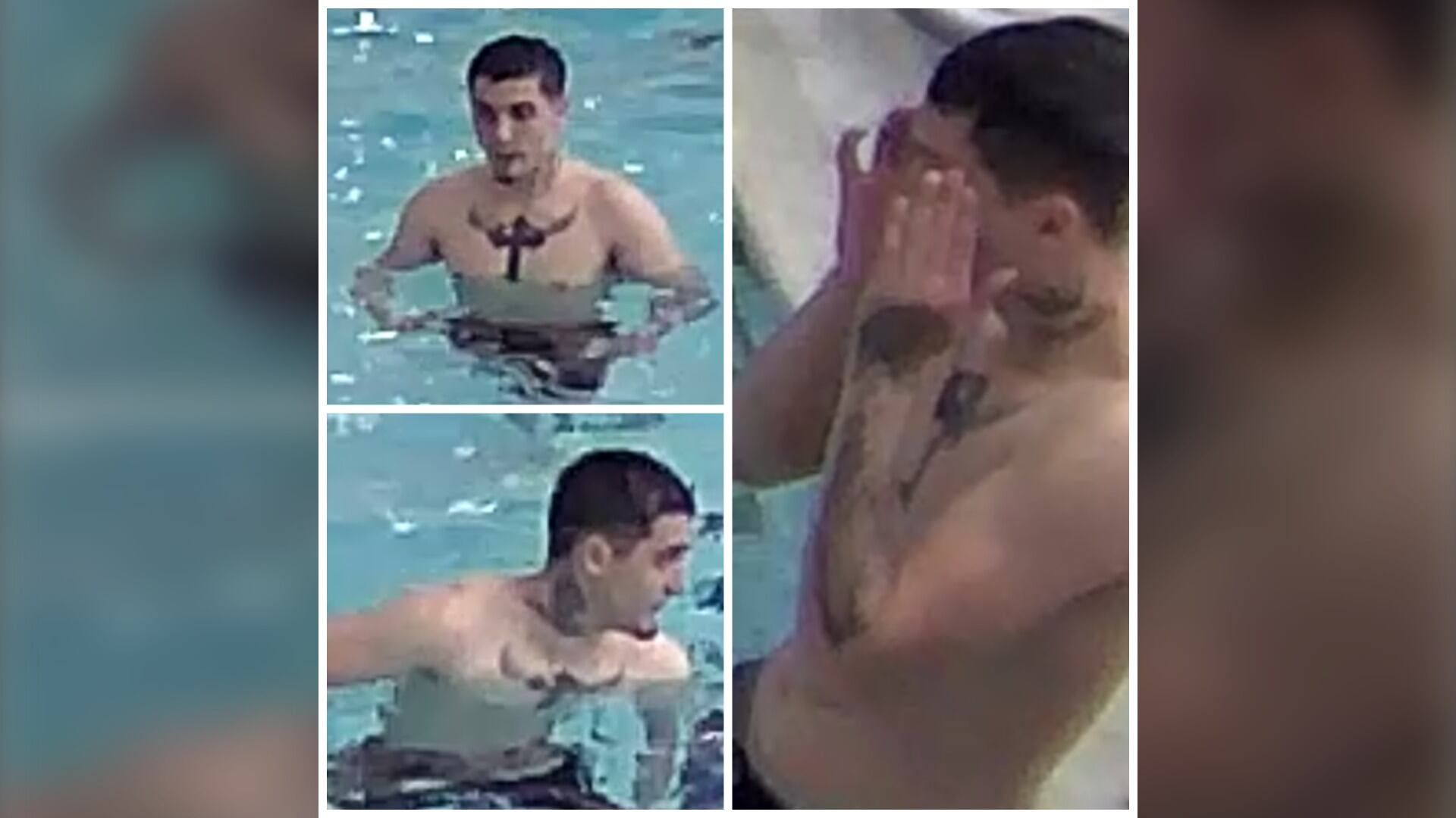 The suspect was seen in the pool between 2:30 and 3:30 p.m. that day, they said.