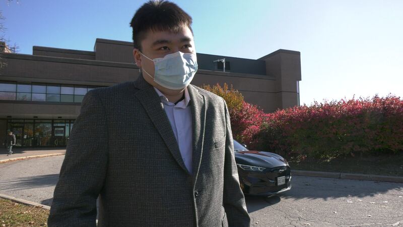 Haoju Zhou, 26, walked out of the Newmarket courthouse Monday and covered his face with a medical mask moments after being found guilty of dangerous and impaired driving causing the death of 38-year-old York Regional Police officer Travis Gillespie, who was on his way to work the morning of Sept. 14, 2022.