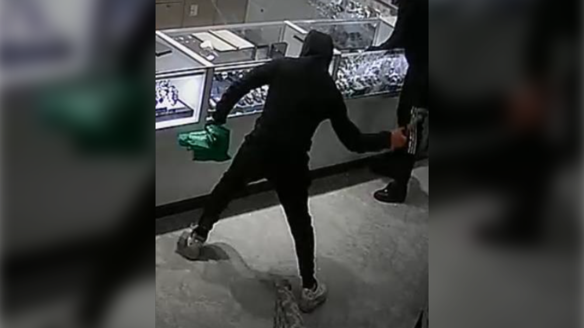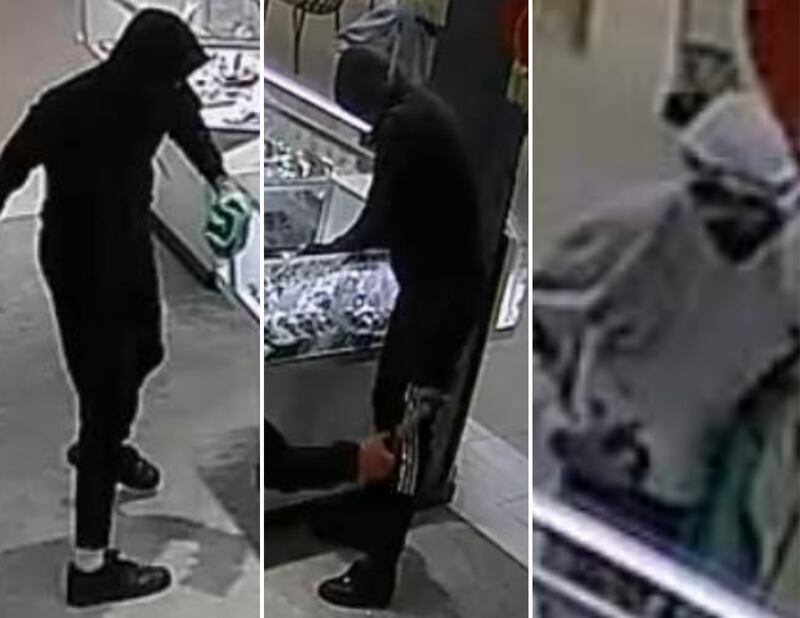 Four suspects entered the store wearing masks and carrying hammers, police said, and once inside, they smashed display cases and filled reusable bags with jewelry.