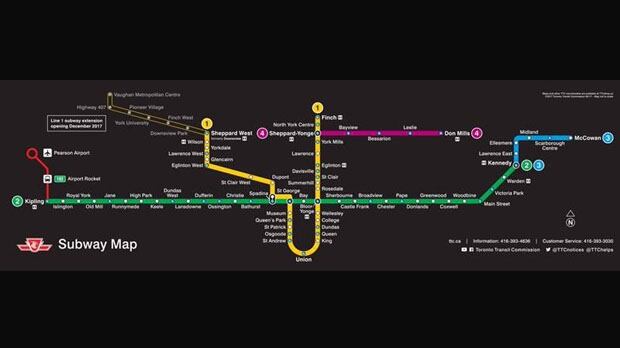 The new maps show TTC riders a mock-up of the extended route, known as the Toronto-York Spadina Subway Extension. The extended route is scheduled to be ready for operation by December, 2017.