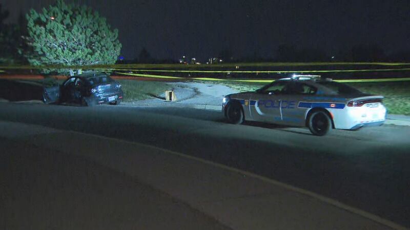 The suspect vehicle was eventually found abandoned in the parking lot of Saint Joseph’s Secondary School, near Bristol and Creditview roads, after it crashed into a tree.
