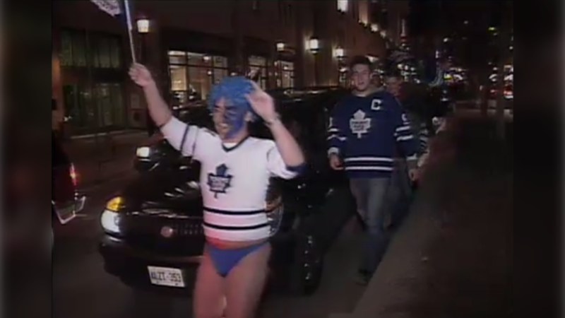 Instead, fans celebrated along Yonge Street. Footage from CTV News Toronto’s cameras showed one group of rowdy fans hopping on the top of a red hummer stopped in the middle of the street and another marching up Yonge with a mock Stanley Cup. The party lasted for hours.