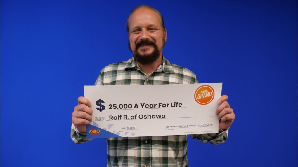 Oshawa resident Rolf Balentin, 56, told OLG he typically plays Lotto 6/49, but chose to go with a Daily Grand draw on June 15 instead. Balentin matched all five main numbers to win a second prize of $25,000 a year for life, but chose the $500,000 prize up front.