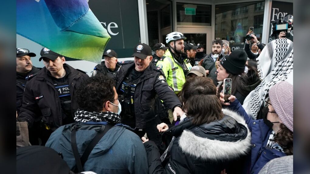 Protest organizers issued a statement ahead of the event saying the demonstration was meant to send a message to the Liberal Party of Canada that it could not proceed with "business as usual" amid the ongoing Israel-Hamas war.