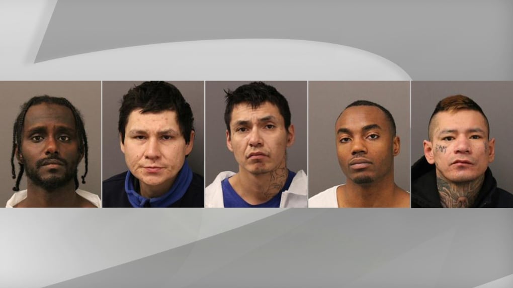 Police said they are charging Lorrin Wolfe, 33, of Onion Lake First Nation, Ali Mohammed, 26, of Toronto, Keworth Bassaragh, 32, of Toronto, Jamie Lee Tootoosis, 36, of Onion Lake First Nation, and Elcee Jimmy of Thunderchild First Nation.