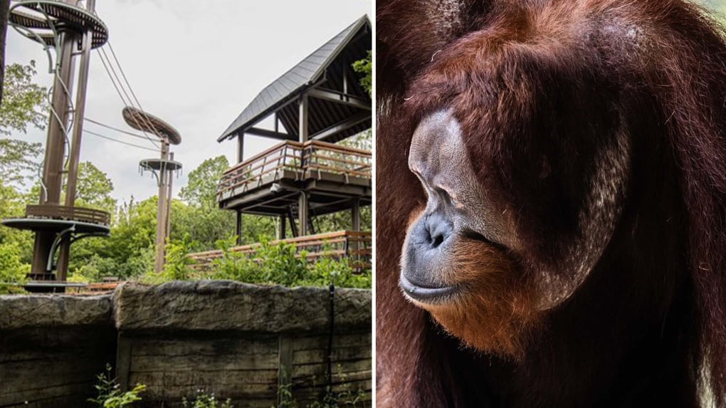 In the four-second clip the Toronto Zoo shared online, Kembali can be seen swinging down from the tower’s lower platform toward a gusset underneath.