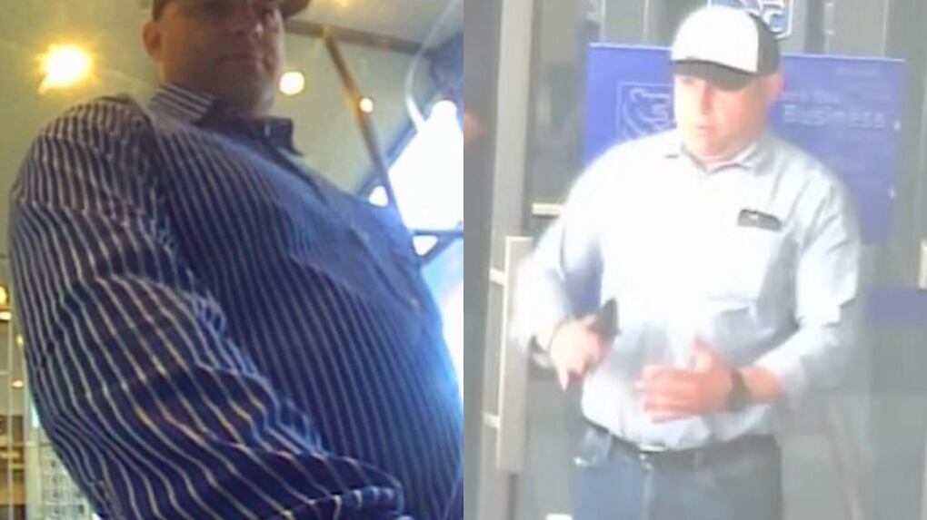 Police have released photos of the suspects, who are both men in their late 30s with a medium build.