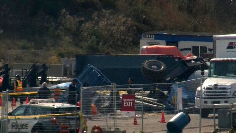 Images from the scene showed a heavy piece of machinery lying on its side next to a flatbed truck. Workers at the scene told CTV News that the equipment was being unloaded when it flipped over and fell on the worker.