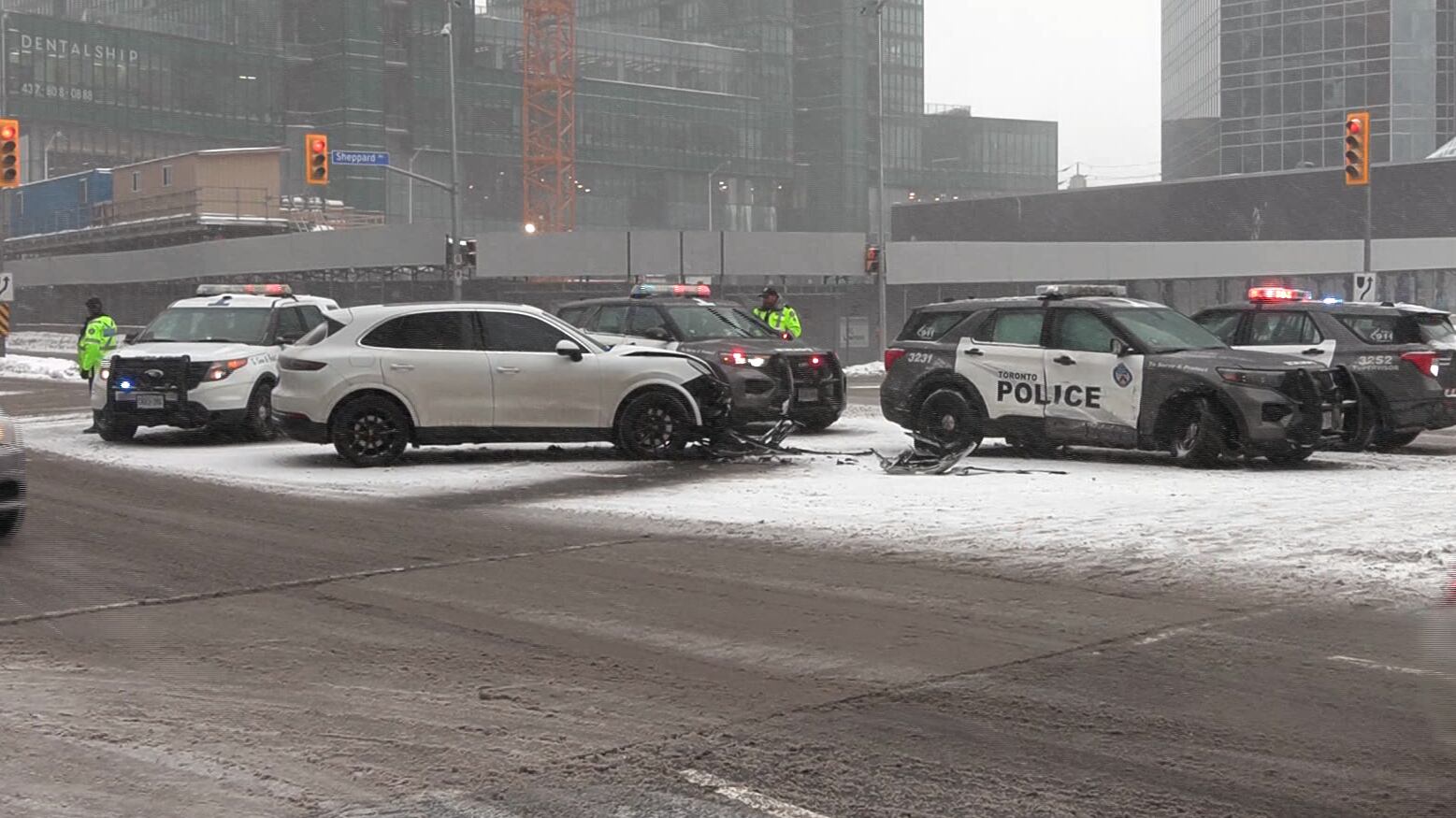 This is the second collision on Saturday involving a police car. Just after 6:30 a.m., a police officer was seriously injured when they were rear-ended on the Don Valley Parkway.