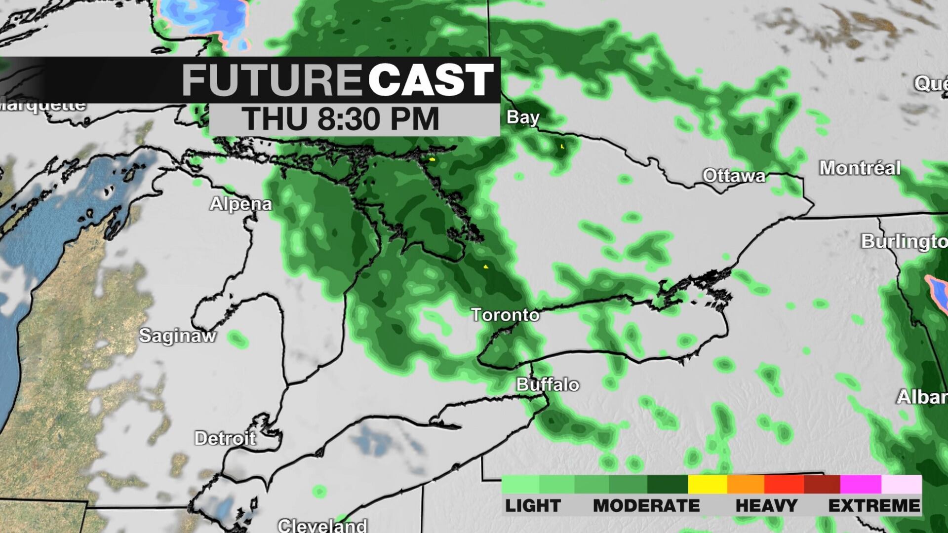 The weather agency says that nearly 35 millimetres of rain has already been reported so far today. It says that an additional 20 millimetres of rain is expected in areas east of the Don Valley Parkway before the rainfall begins to taper off later this evening.