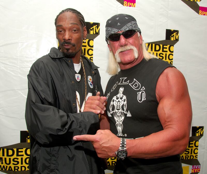 Snoop Dogg and Hulk Hogan during The 2006 MTV VMA Forum at Radio City Music Hall in New York City, New York, United States. (Photo by Michael Loccisano/FilmMagic)