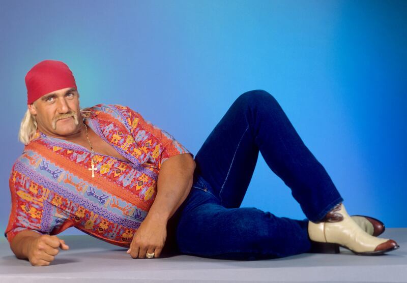 Hulk Hogan poses for a photo on October 14, 1991 in Munich, Germany. (Photo by Fryderyk Gabowicz/picture alliance via Getty Images)