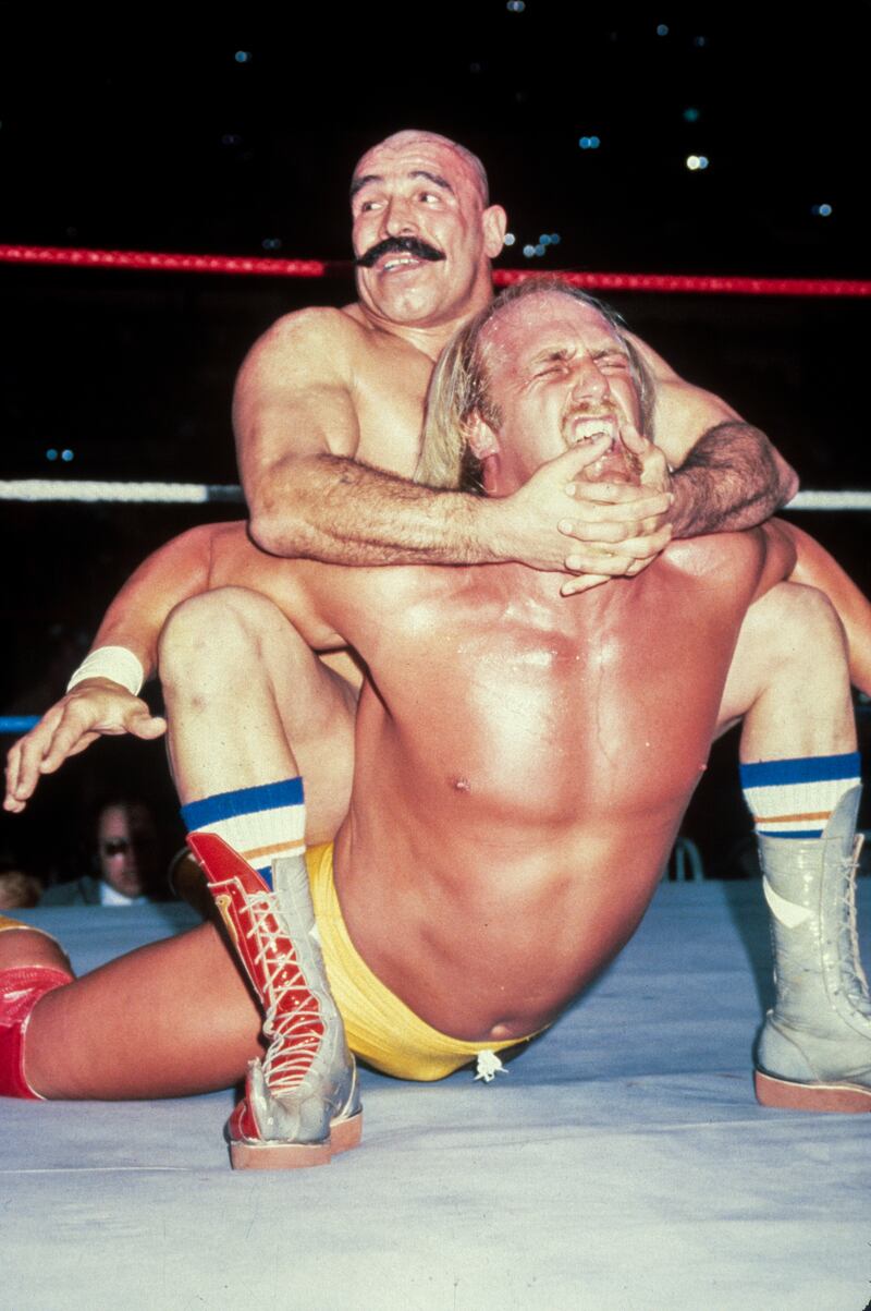 Hulk Hogan delivering a punch to the head of Andre the Giant during their match in Montreal, Canada on August 25, 1980. (Photo by The Stanley Weston Archive / Getty Images)