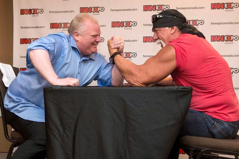 Rob Ford and Hulk Hogan have arm wrestle battle in 2013