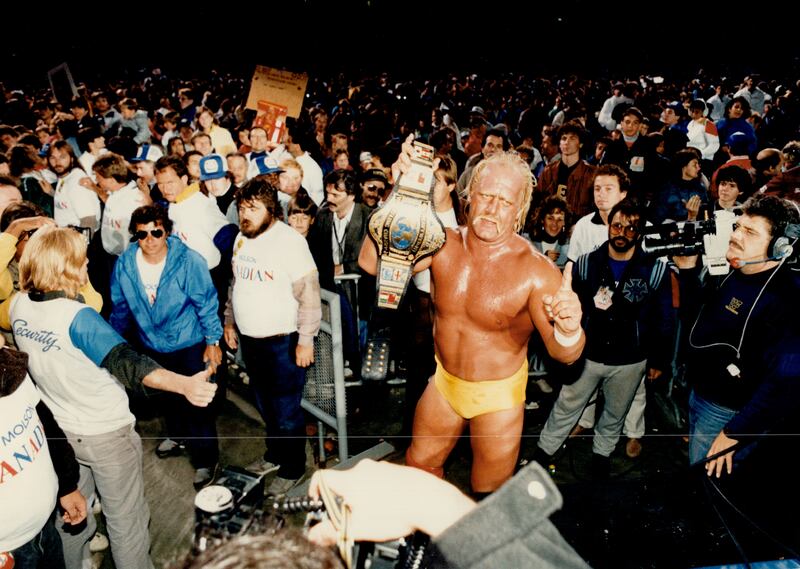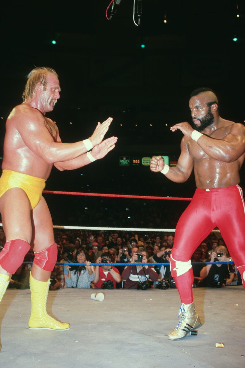 Hogan first became champion in what was then the World Wrestling Federation in 1984, and pro wrestling took off from there. His popularity helped lead to the creation of the annual WrestleMania event in 1985, when he teamed up with Mr. T to beat “Rowdy” Roddy Piper and “Mr. Wonderful” Paul Orndorff in the main event.