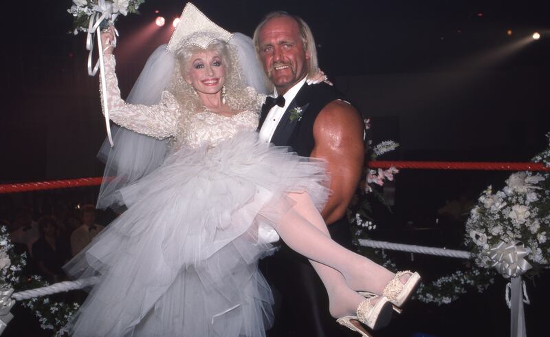 Dolly Parton and Hulk Hogan on 'Dolly' in 1987. (Photo by Jean Krettler/Disney General Entertainment Content via Getty Images)
