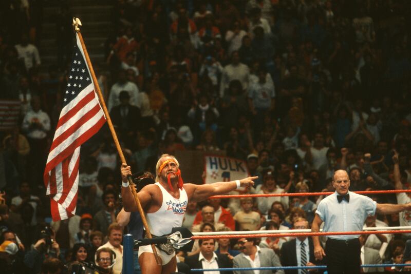 “Hulkamania,” as the energy he created was called, started running wild in the mid-1980s and pushed professional wrestling into the mainstream. He was a flag-waving American hero with the horseshoe mustache, red and yellow gear and massive arms he called his “24-inch pythons.”