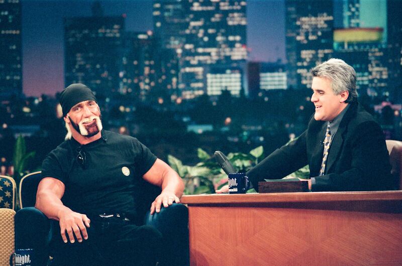 Professional wrestler Hulk Hogan during an interview with host Jay Leno on November 26, 1998 -- (Photo by: Margaret Norton/NBCU Photo Bank/NBCUniversal via Getty Images via Getty Images)