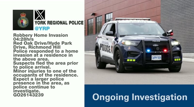 One person sustained minor injuries after a home invasion in Richmond Hill on Tuesday morning, police say.