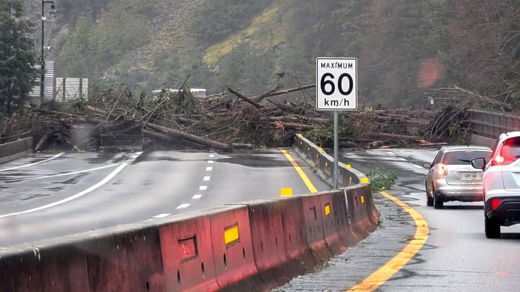 The mudslide near Lions Bay, about 40 kilometres north of Vancouver, came down during a severe windstorm that hit B.C.’s south coast on Saturday.